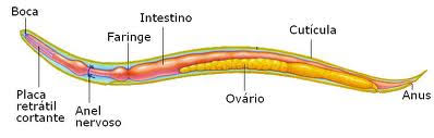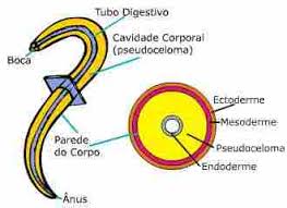 São animais triblásticos (possuem os 3 folhetos germinativos: ectoderme, mesoderme e endoderme), pseudocelomados (cavidade do corpo é delimitada pelos tecidos da mesoderme e tecidos da endoderme), protostômios (quando o blastóporo dá origem à boca) e possuem simetria bilateral. corpo desses vermes é coberto por uma cutícula protetora muito resistente, produzida pela epiderme, composta principalmente de colágeno. Essa cutícula protege contra as enzimas produzidas pelo sistema digestório do organismo hospedeiro. A epiderme é composta por uma camada de células simples.